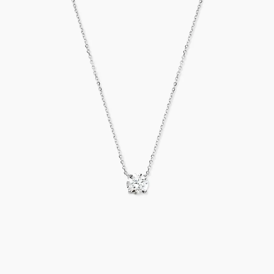 Collier Or Blanc 750/1000 Solitaire Maille Forcat Diamant Synthétique 1.01ct 45cm