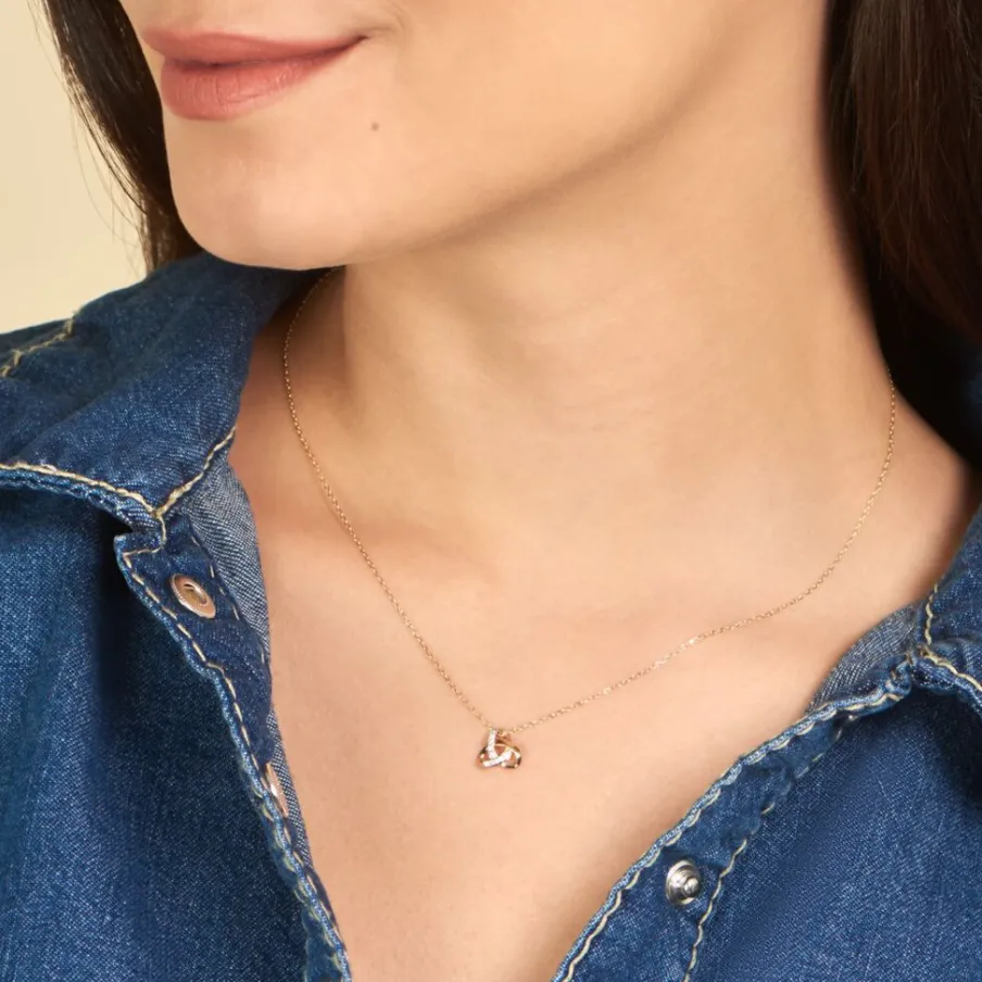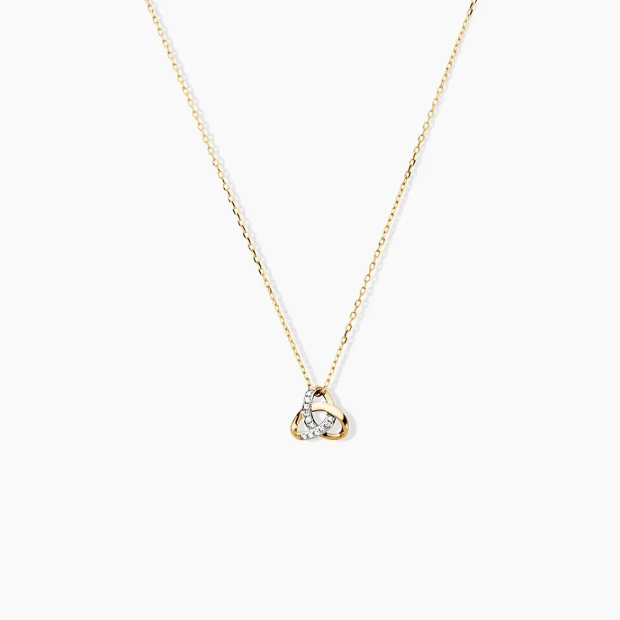 Collier Or Jaune 375/1000 N艙ud Ajoure Pavage Diamants Ronds Maille Forcat 40+2cm