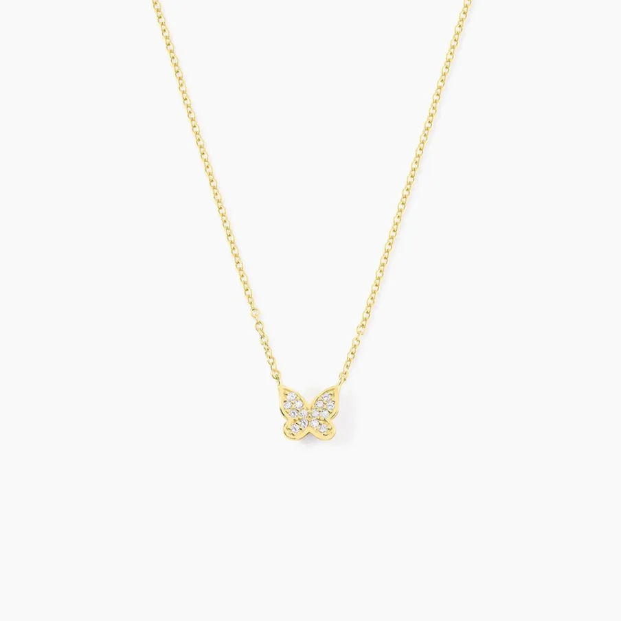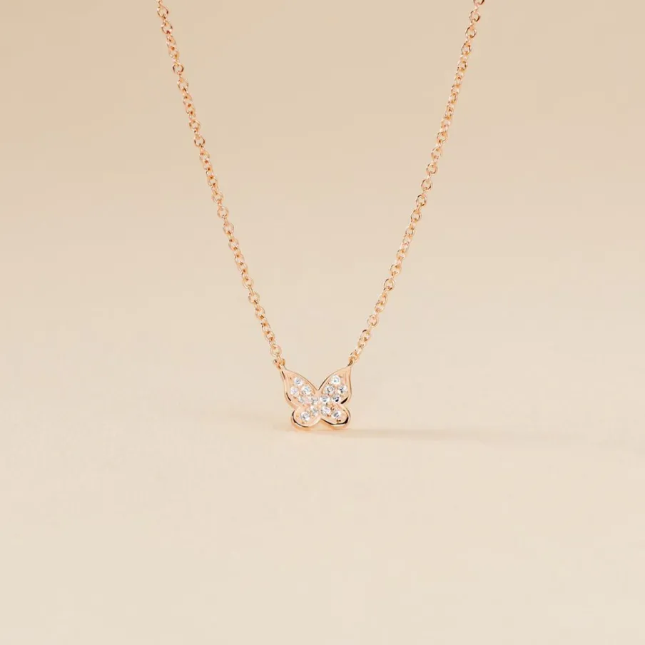 Collier Court Argent Rose 925/1000 Papillon Oxyde De Zirconium Maille Forcat Serti Griffes 38cm