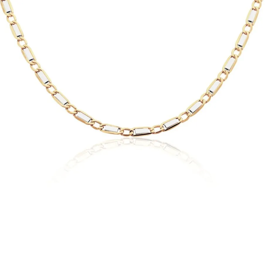 Collier Or Bicolore 375/1000 Maille Plaquette 5.6mm 70cm