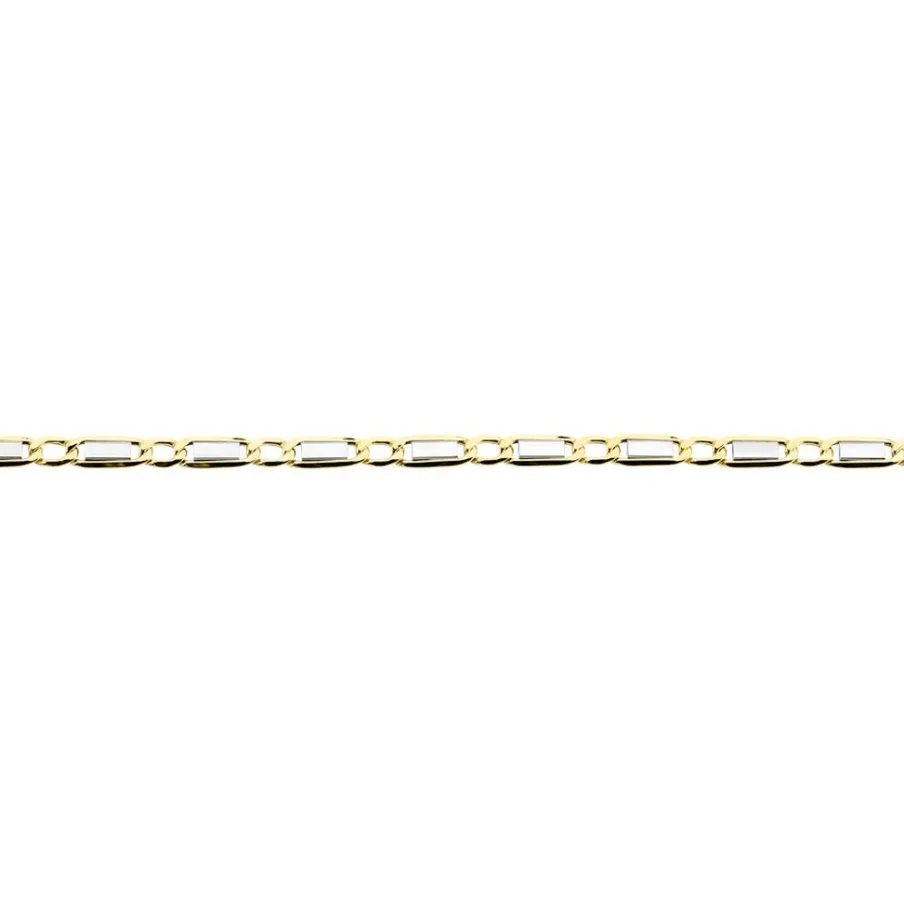 Collier Maille Or Bicolore 375/1000 Maille Plaquette Alternée 1/1 Largeur 4.7mm 65cm