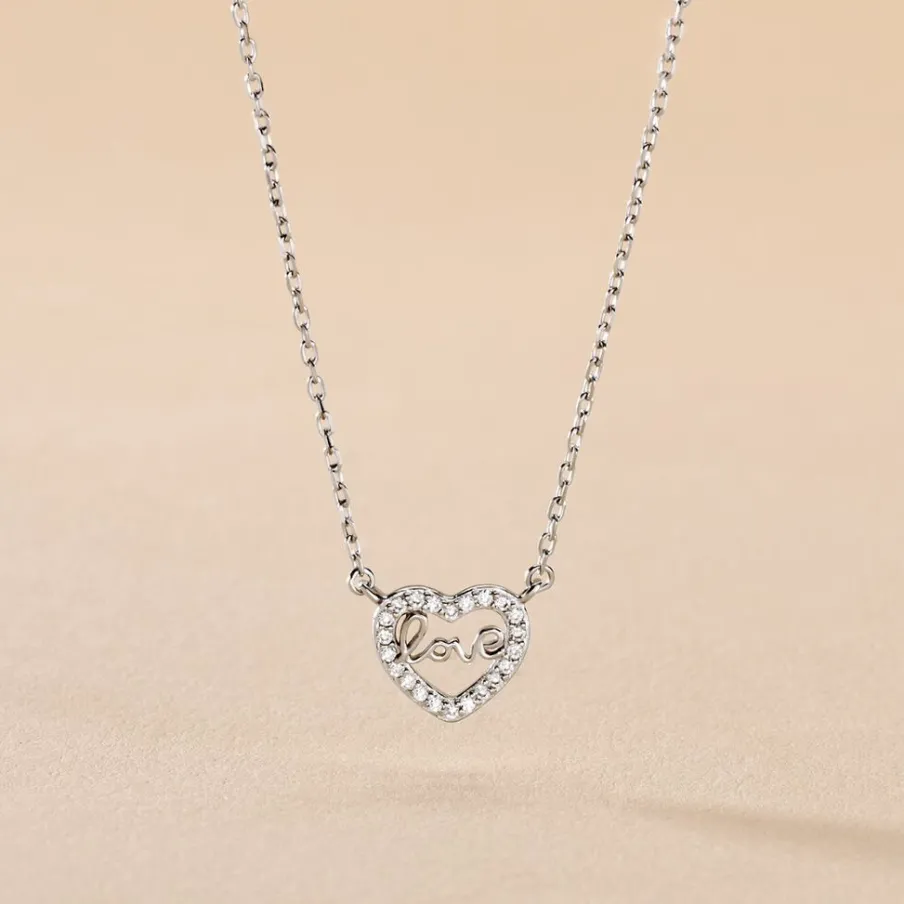 Collier Argent 925/1000 delicata Motif C艙ur Pave Oxydes De Zirconium + Ecriture Love 45cm