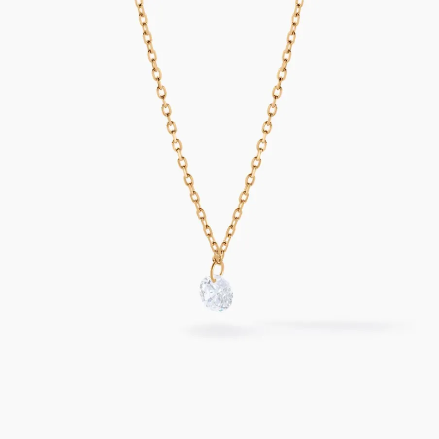 Collier Plaqué Or Jaune Oxyde De Zirconium Percé Maille Forçat 45cm