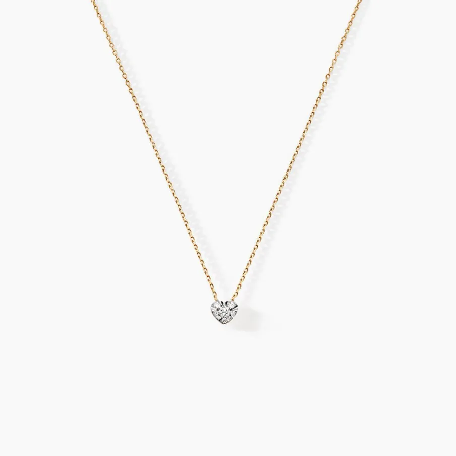Collier Or Jaune 375/1000 C艙ur Multipierres 0.10cts Diamants Maille Forcat 40+2cm