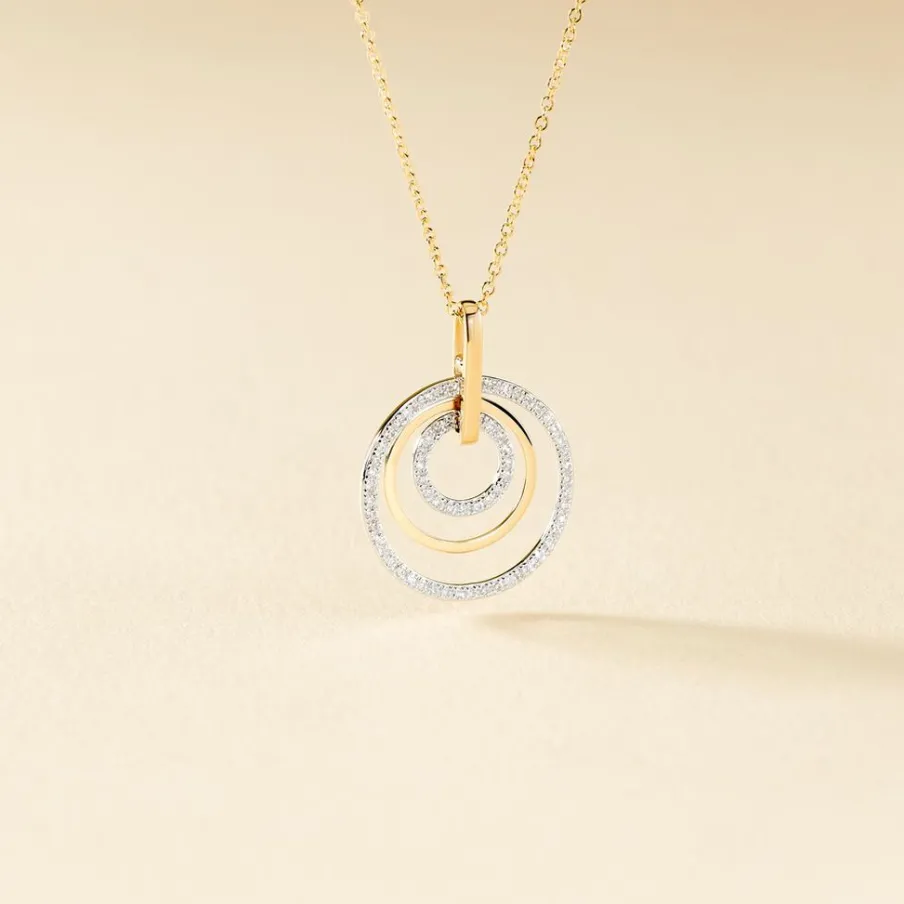 Collier Or Jaune 375/1000 Triple Cercles Pavage Diamants 42cm