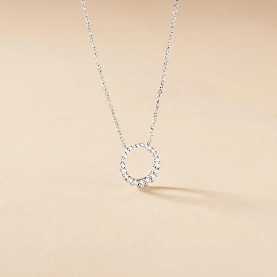 Collier Argent 925/1000 elaïs Ovale Oxydes De Zirconium Diamantes 45cm