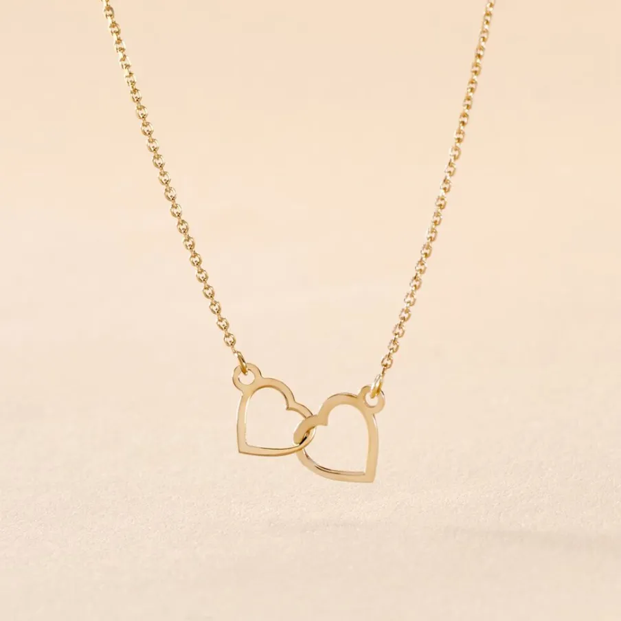 Collier Or Jaune 375/1000 Double C艙urs Ajoures Entrelaces Maille Jaseron 42cm