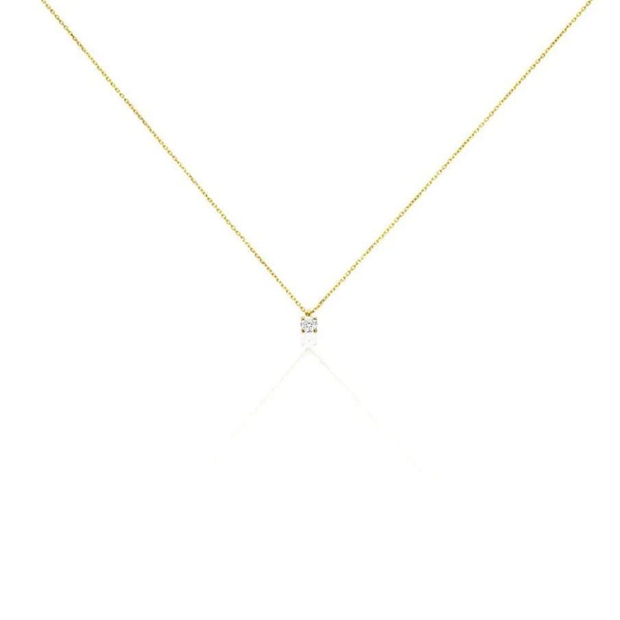 Collier Or Jaune 750/1000 Diamant 0.16cts Diamant Serti 4 Griffes Beliere Mobile Maille Forcat 40+2cm