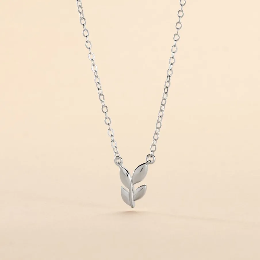 Collier Argent Blanc 925/1000 Motif Feuille Maille Forçat 38cm