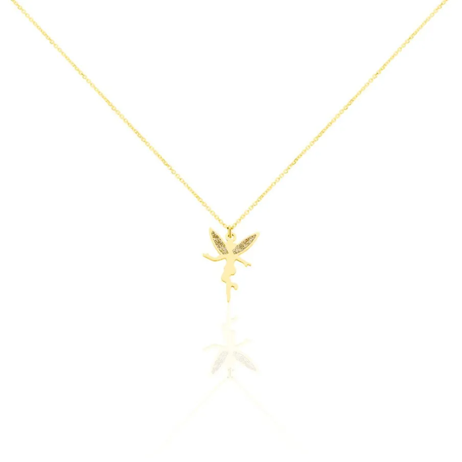 Collier Or Jaune 375/1000 Motif Fee Glitter Dore Maille Jaseron 38cm