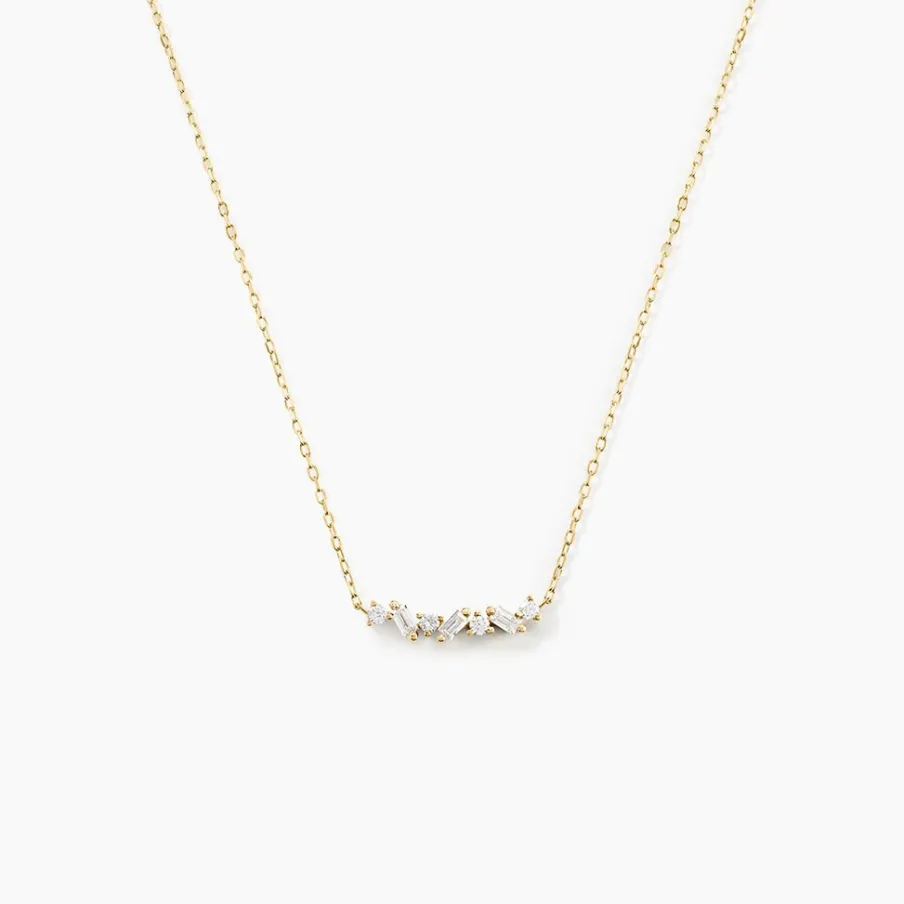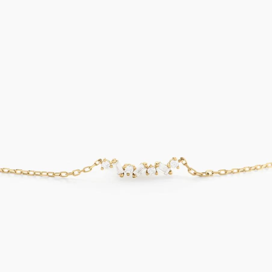 Collier Or Jaune 375/1000 Jardin De Pierres Diamants Synthetiques Baguettes 0.10cts Sertis Griffes Maille Forcat 40+2cm