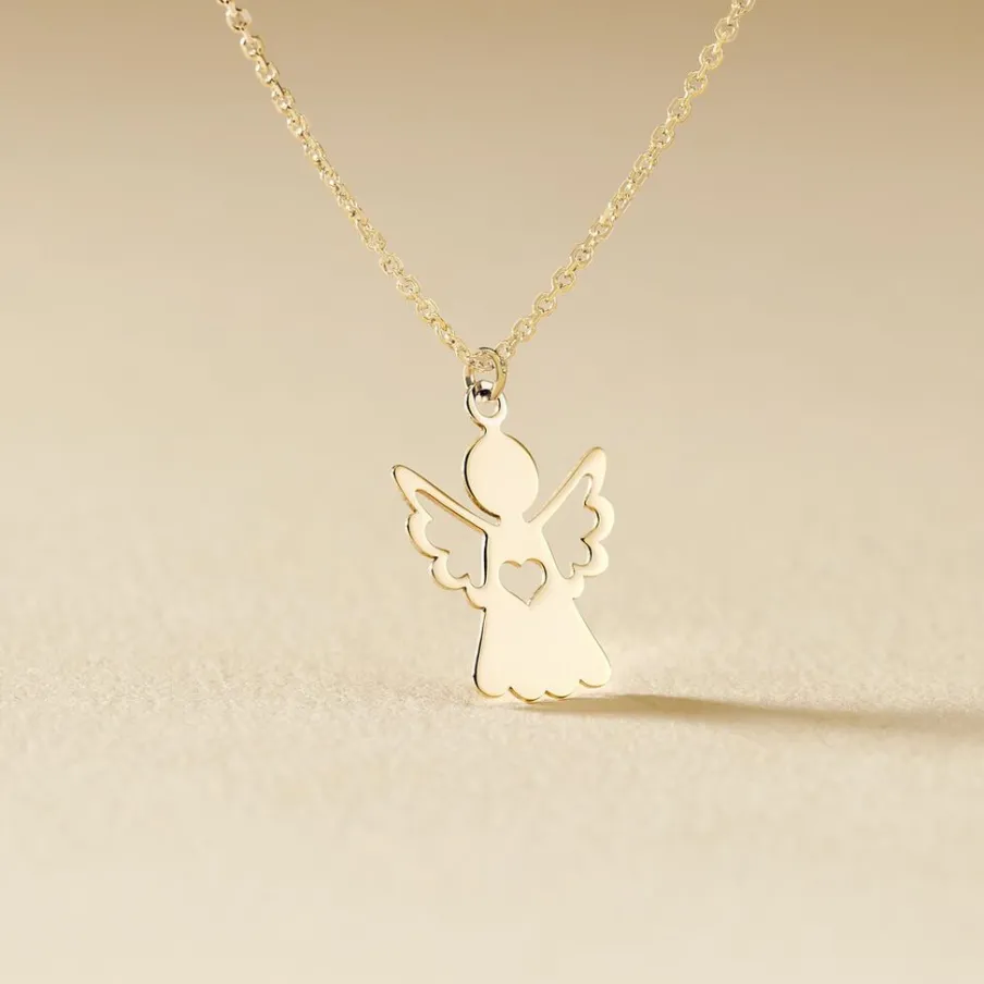 Collier Or Jaune 375/1000 Motif Ange Maille Jaseron 38cm