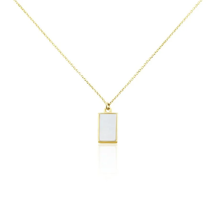 Collier Or Jaune 375/1000 Nacre Rectangle Maille Jaseron 40+2cm