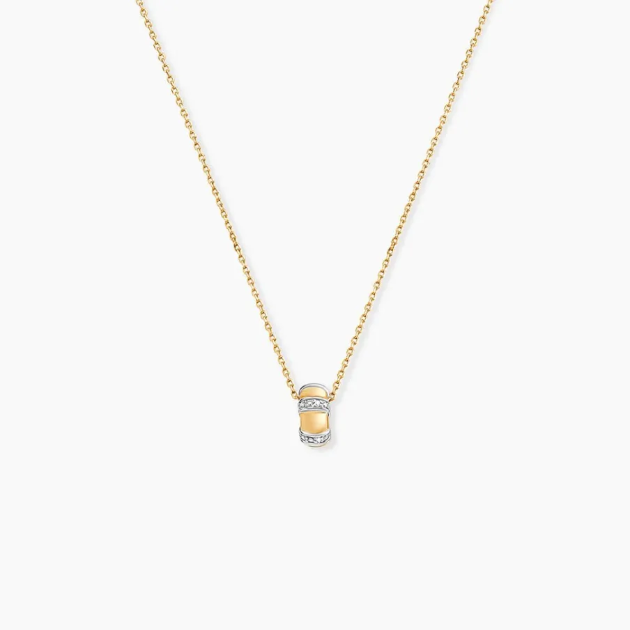 Collier Or Jaune 375/1000 Cercle Barettes Pavage Diamant Maille Forcat 40+2Cm