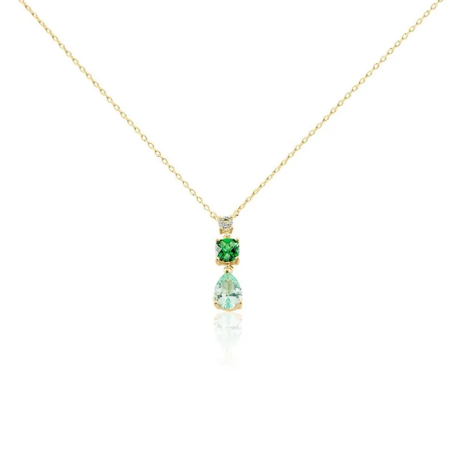 Collier Plaqué Or Jaune Pierres Artificielles Vertes Maille Forçat 45cm