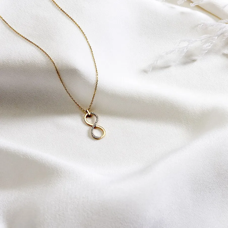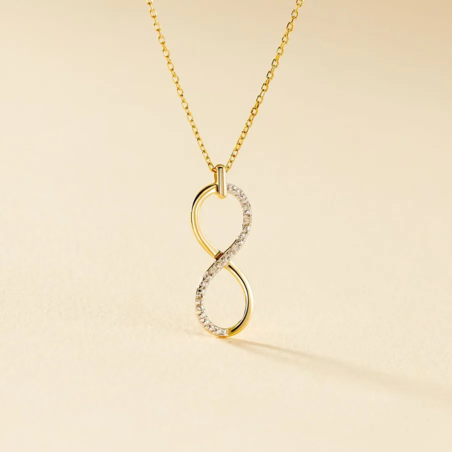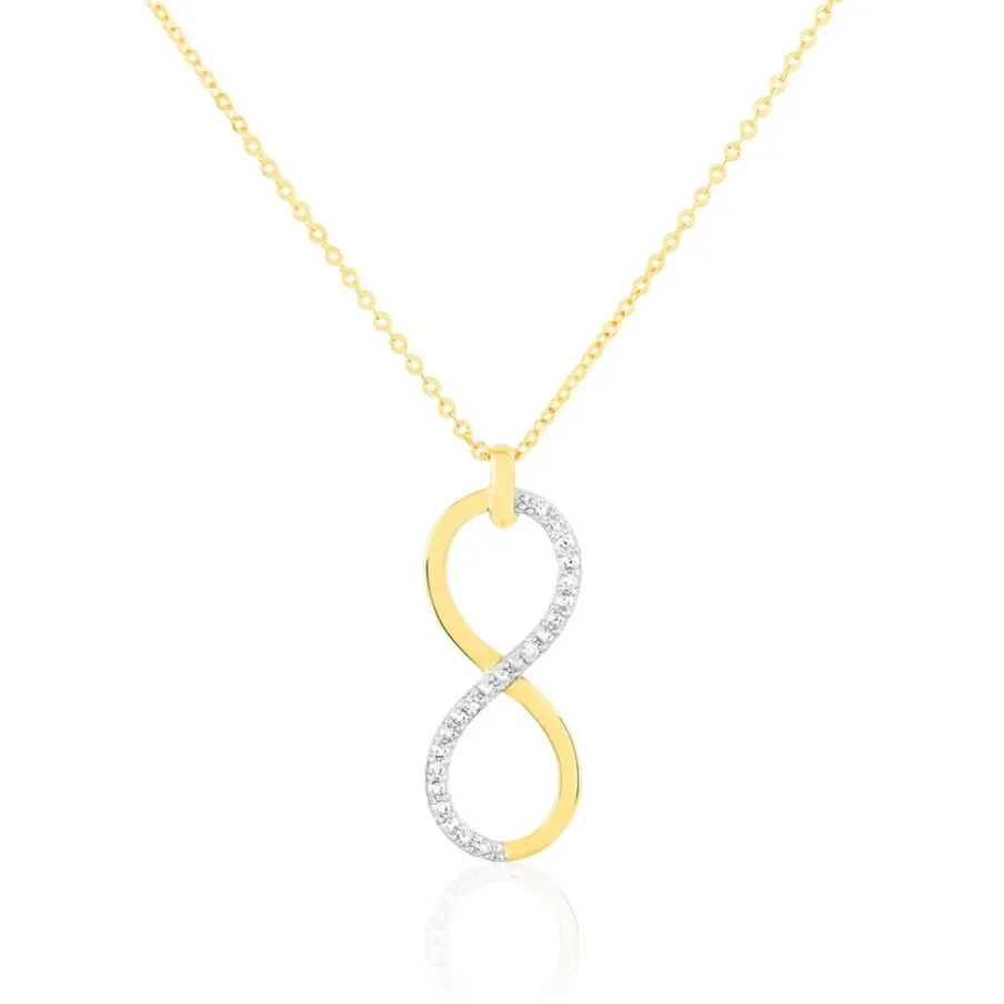 Collier Or Jaune 375/1000 Forme Infini Demi Pavage Diamants 43cm