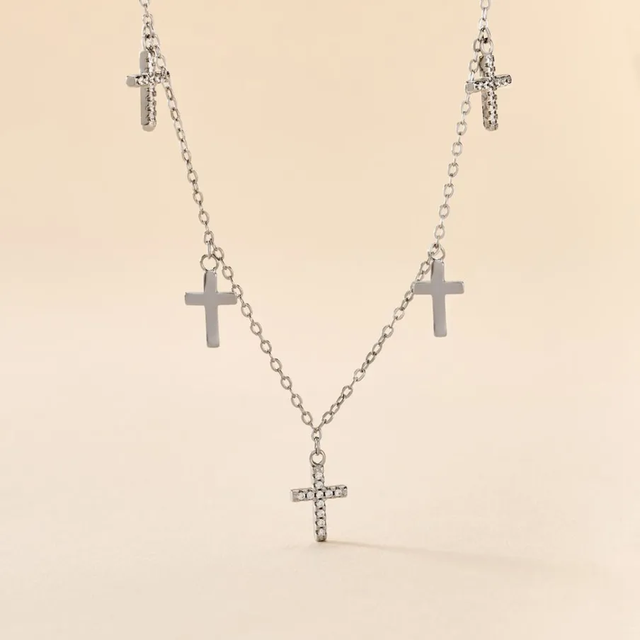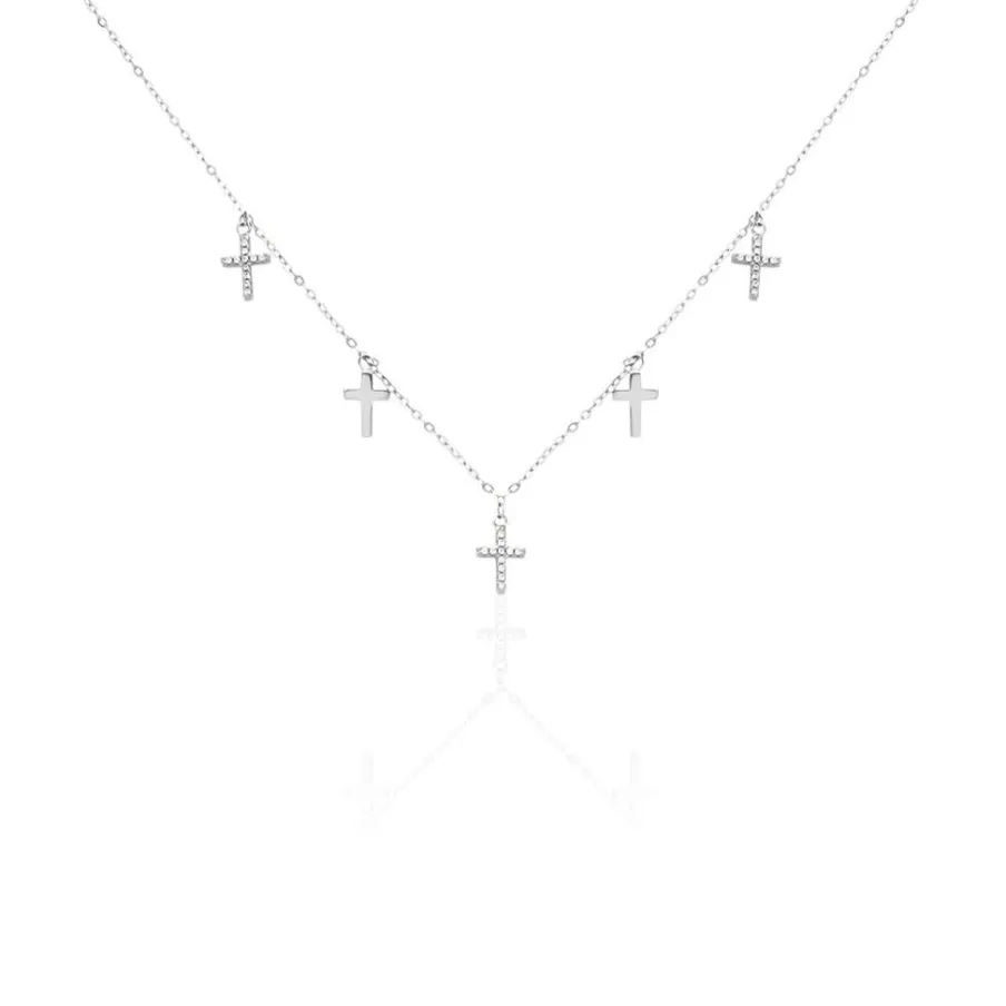 Collier Argent 925/1000 ivah Pampilles Croix Oxydes De Zirconium Maille Forcat 45cm