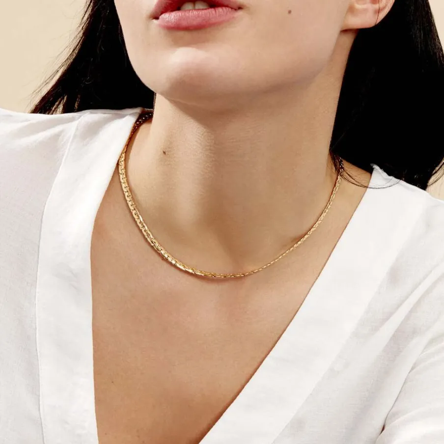 Collier Or Jaune 375/1000 Maille Haricot 4mm 45cm