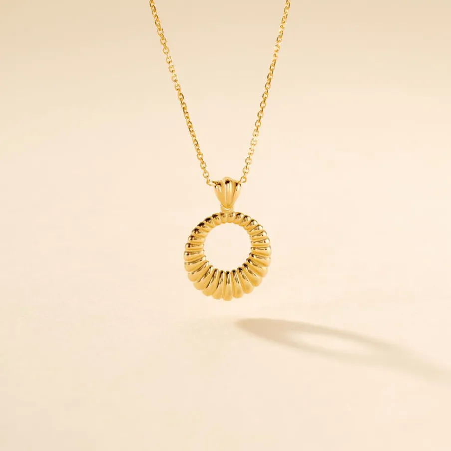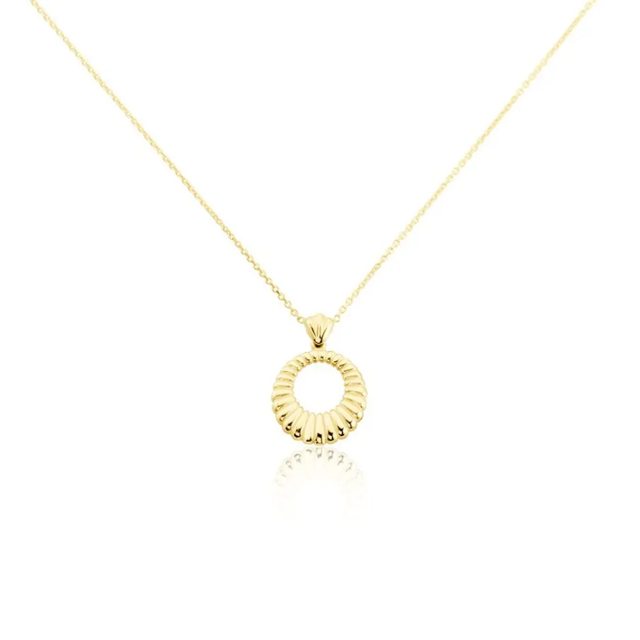 Collier Or Jaune 375/1000 Cercle Ajoure Cisele Maille Jaseron 40+2cm