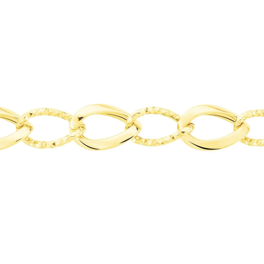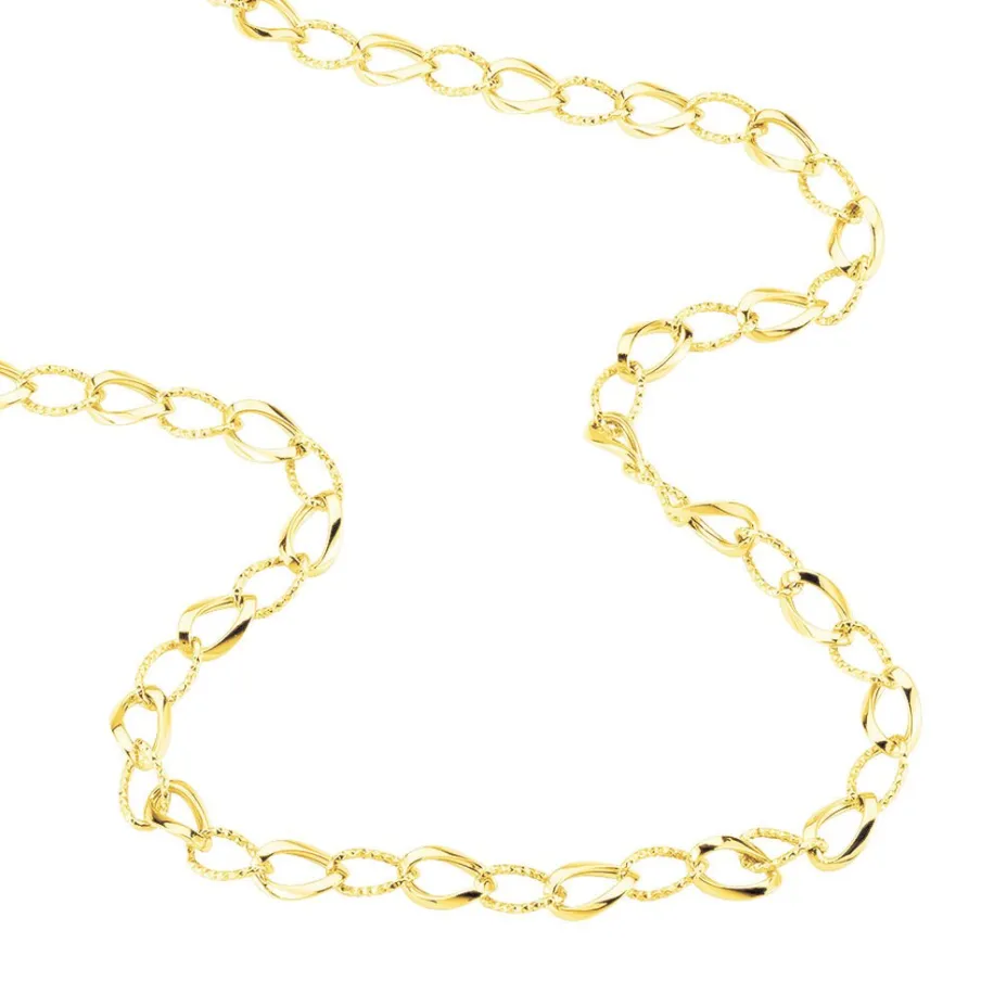 Collier Or Jaune 375/1000 Maille Alternée Lisse Et Godronnée 55cm