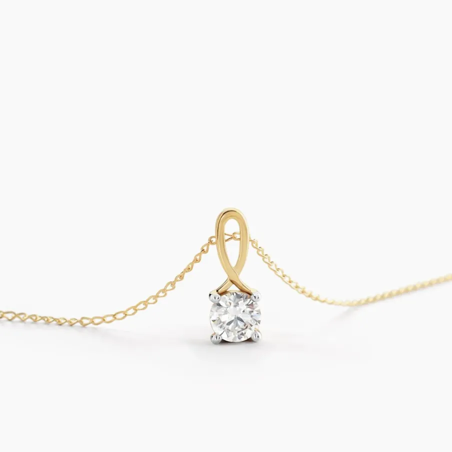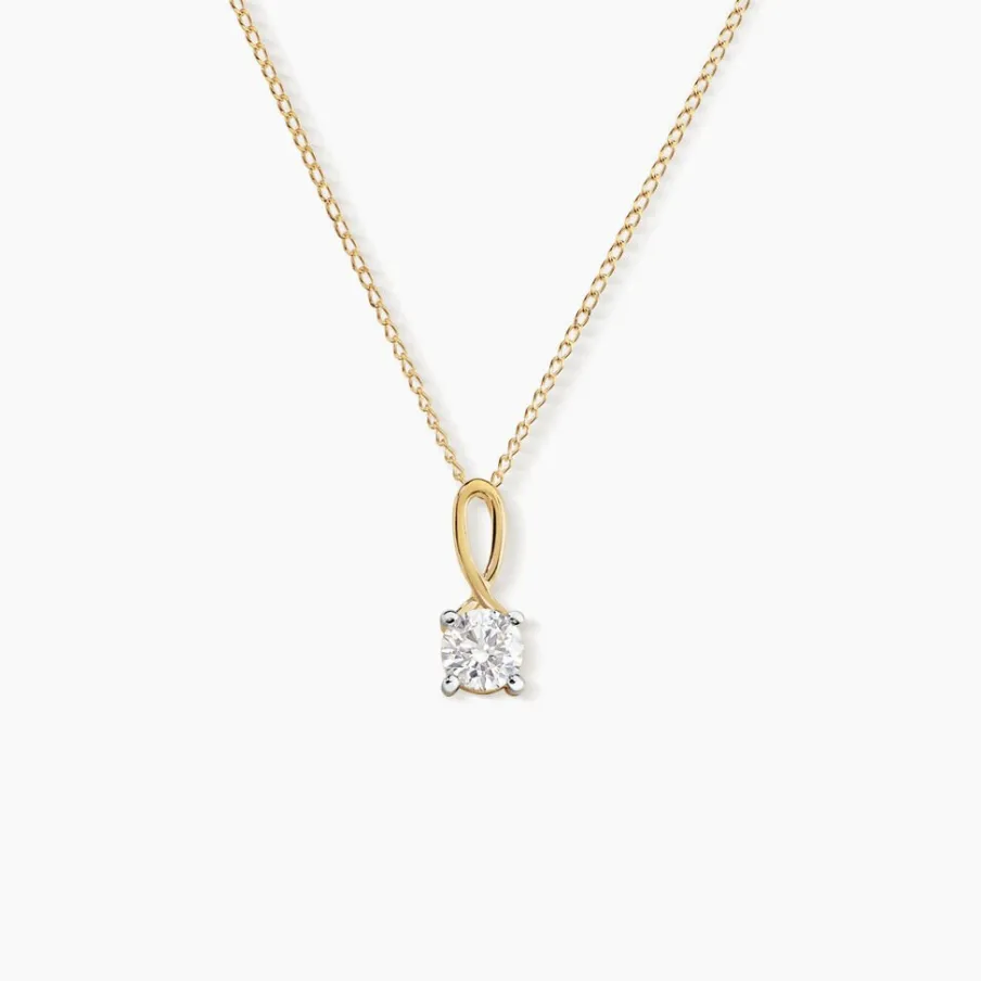 Collier Or Jaune 375/1000 Solitaire Oxyde De Zirconium 4 Griffes Bélière Entrelacée 45cm