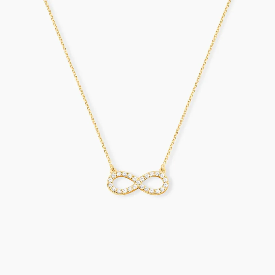 Collier Or Jaune 375/1000 Forme Infini Et Oxydes De Zirconium 42cm
