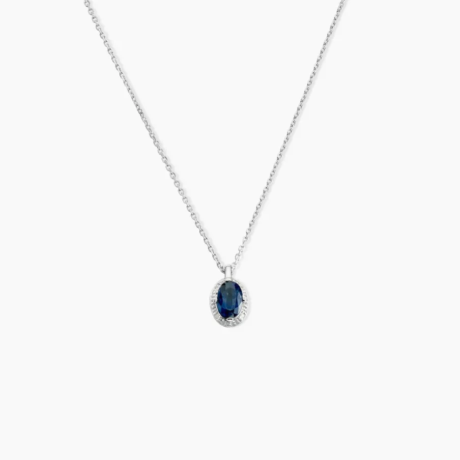 Collier Or Blanc 375/1000 Saphir Et Entourage Diamant Blanc Kriska 42cm
