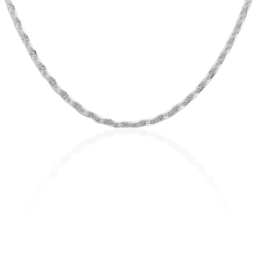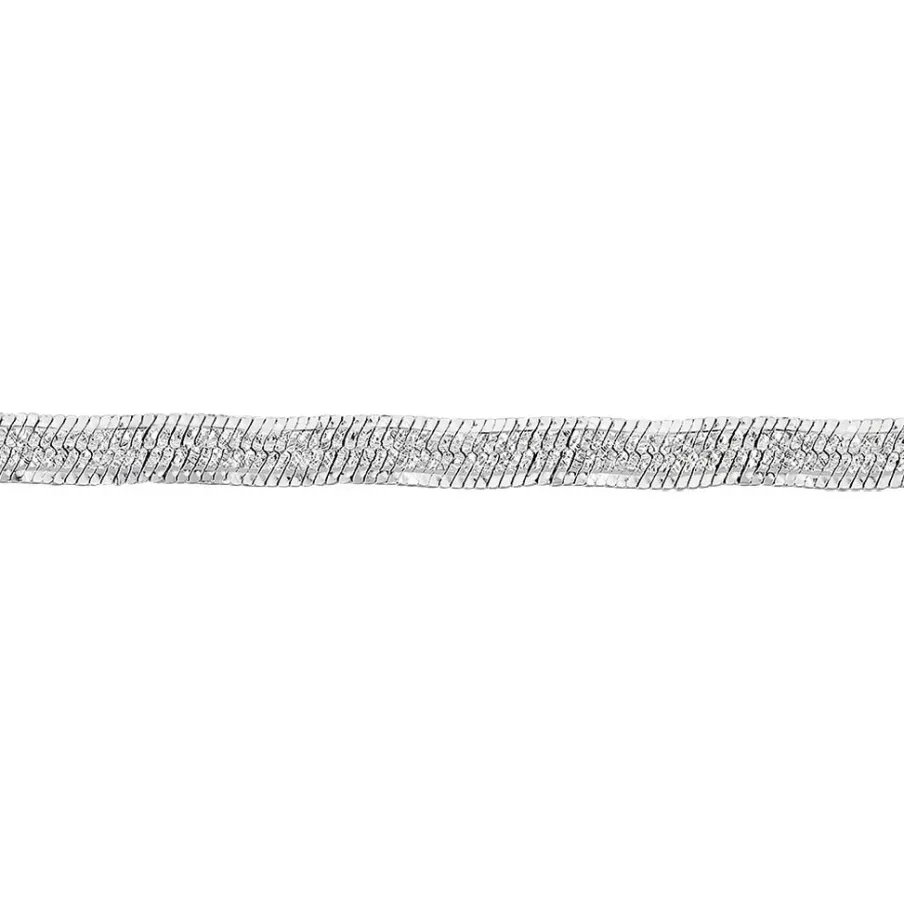 Collier Argent Blanc 925/1000 Maille Heringbone Ondulee Diamantee Largeur 3.3mm 42cm
