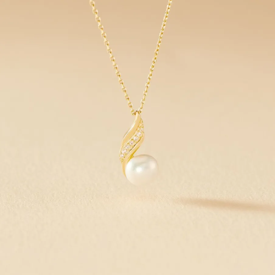Collier Or Jaune 375/1000 Perle De Culture Nacre 6mm Et Oxydes De Zirconium 43cm