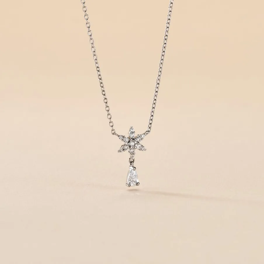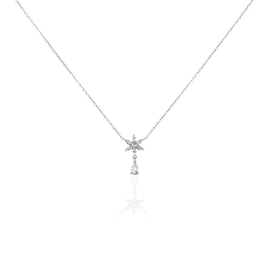 Collier Argent 925/1000 Etoile Oxyde De Zirconium Serti Griffes Maille Forçat 45cm