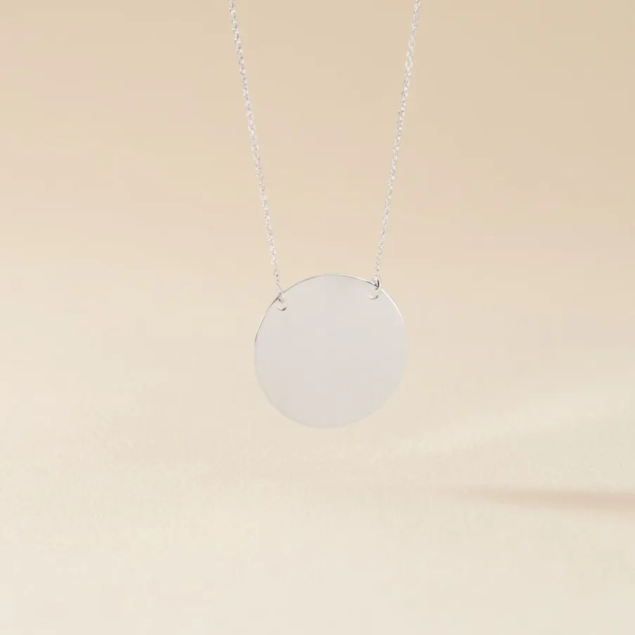 Collier Or Blanc 375/1000 Pastille Gravable Maille Forcat 42cm