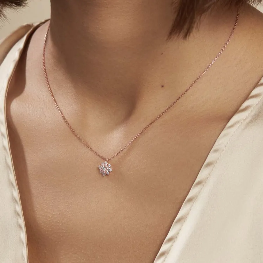 Collier Argent Rose 925/1000 Motif Fleur Pavage Oxydes De Zirconium 45cm