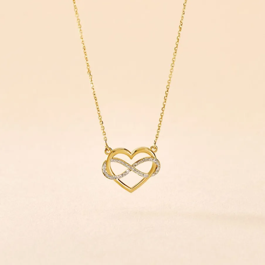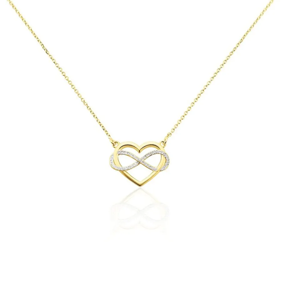 Collier Or Jaune 375/1000 C艙ur Ajoure Et Infini Glitter Argente Maille Jaseron 40+2cm