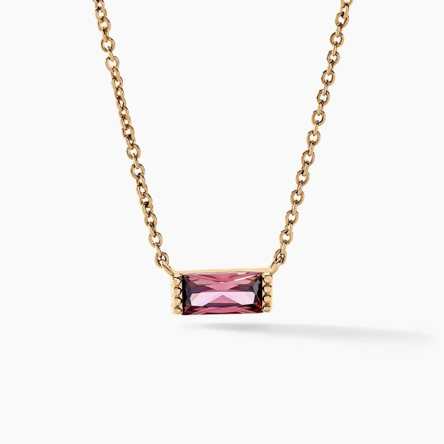 Collier Plaqué Jaune Rectangle Pierre De Synthese Violet Fumé Maille Jaseron 42+2cm