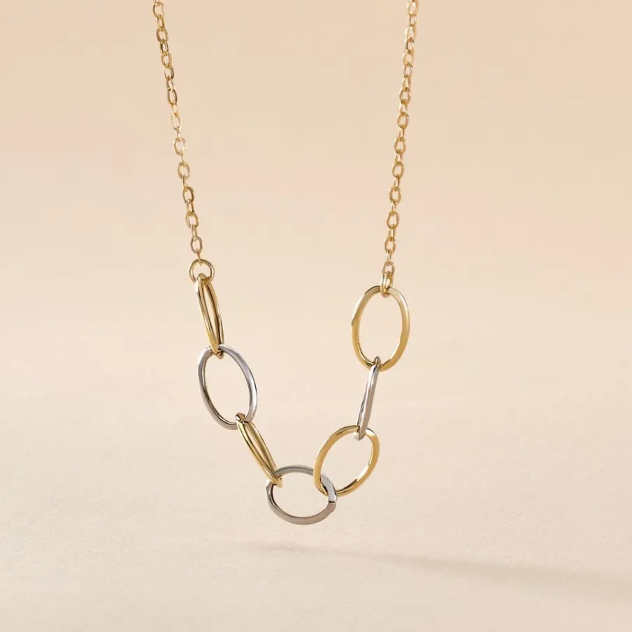 Collier Or Bicolore 375/1000 Chaine Forçat Or Jaune Et 7 Eléments Ovales Or Blancs Et Or Jaune Alternes 45cm