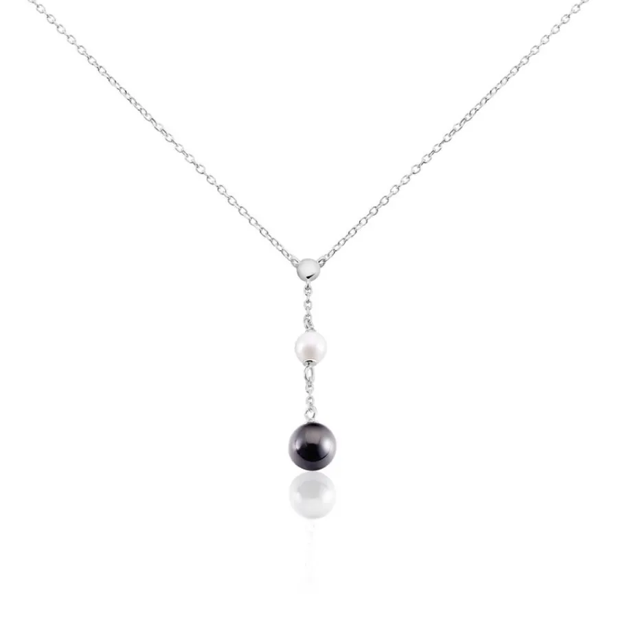 Collier Argent Blanc 925/1000 Perles De Culture Et Boule Ceramique Noire Maille Forcat 45cm