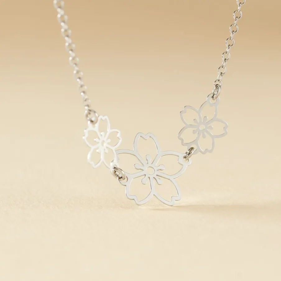 Collier Argent Blanc 925/1000 Triple Fleurs Maille Forcat 45cm