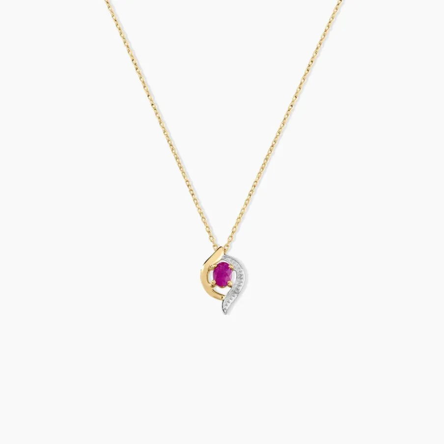 Collier Or Jaune 375/1000 Rubis Ovale Serti 4 Griffes