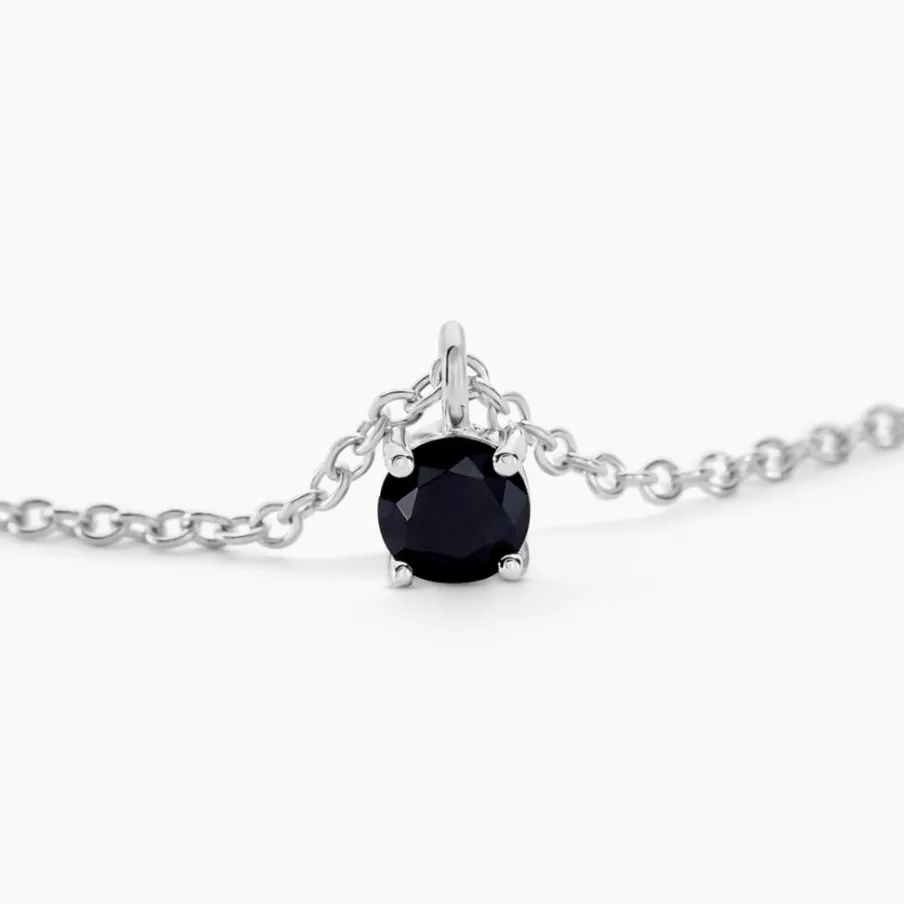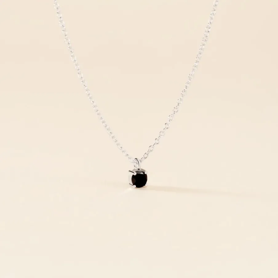 Collier Solitaire Argent 925/1000 Oxyde De Zirconium Noir Serti 4 Griffes 4mm Maille Forçat 45cm