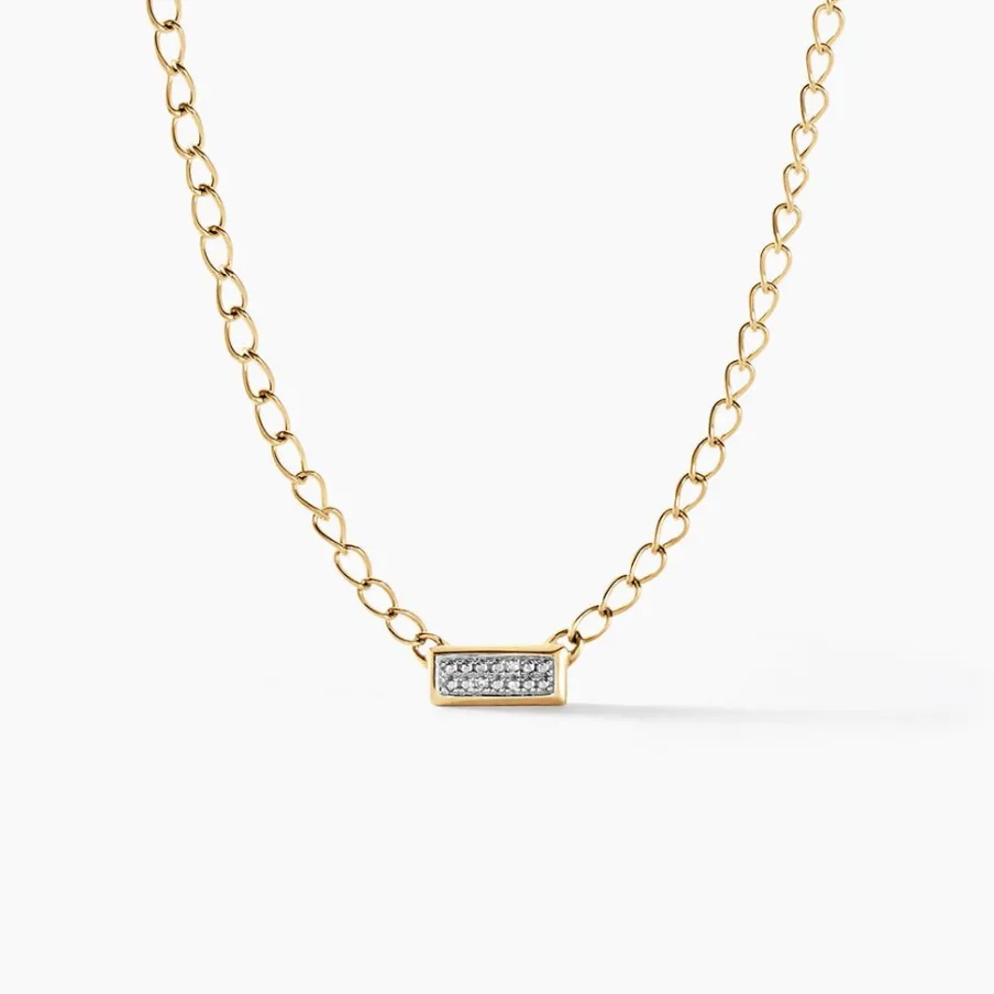 Collier Or Jaune 375/1000 Rectangle Diamants 0.004cts Illusion Maille Gourmette 50cm