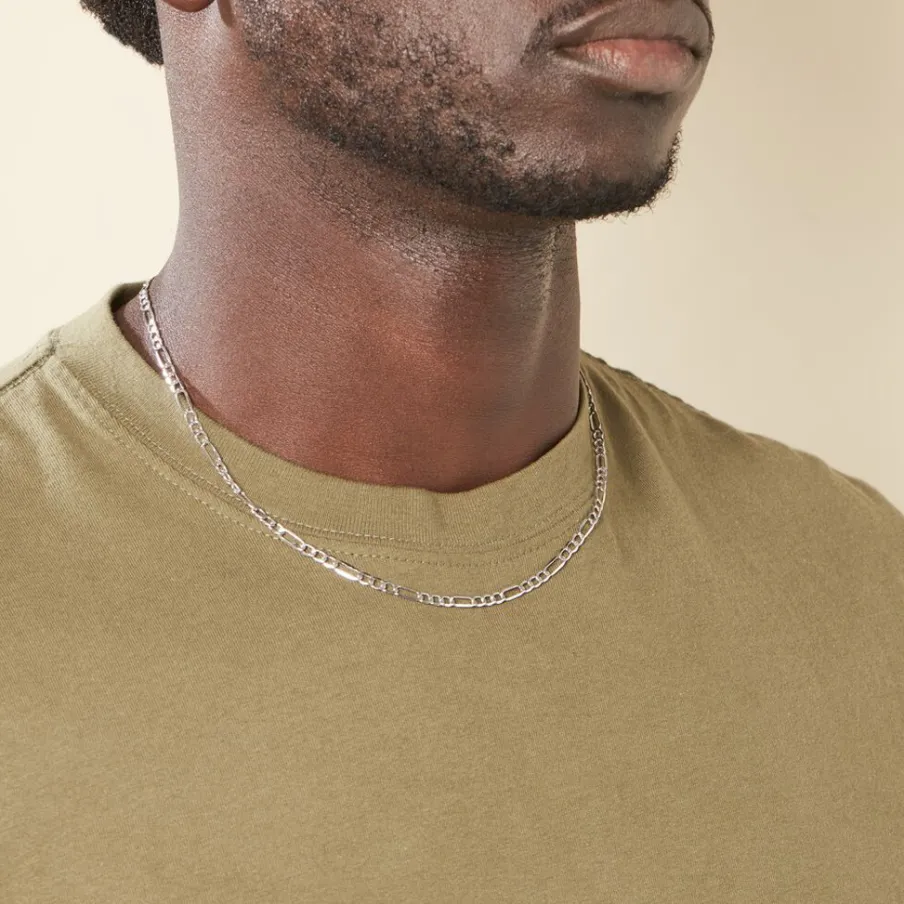 Chaine Or Blanc 375/1000 Maille Alternée 1/3 Largeur 3.75mm 55cm