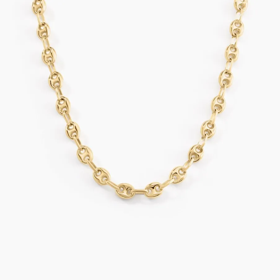 Collier Or Jaune 375/1000 Maille Grain De Café Largeur 4.7mm 45cm