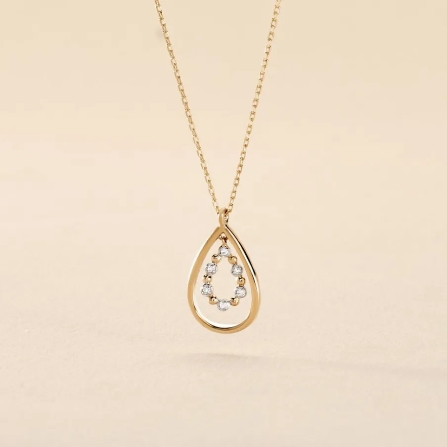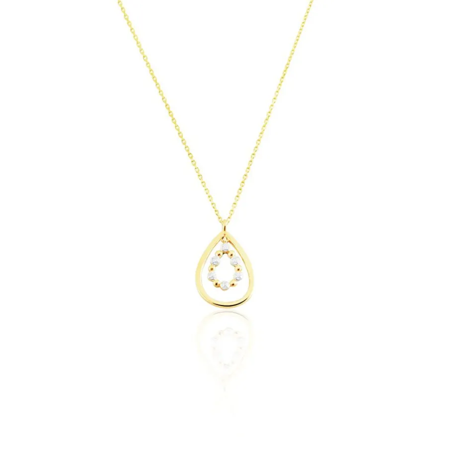 Collier Or Jaune 375/1000 Forme Double Goutte Pavage Diamants Maille Forçat 42cm