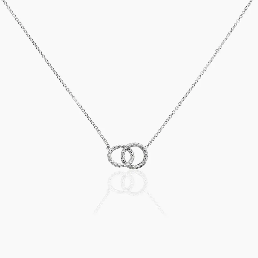 Collier Argent Blanc 925/1000 Cercles Entrelacés Effet Perlé Maille Forçat 42+3cm
