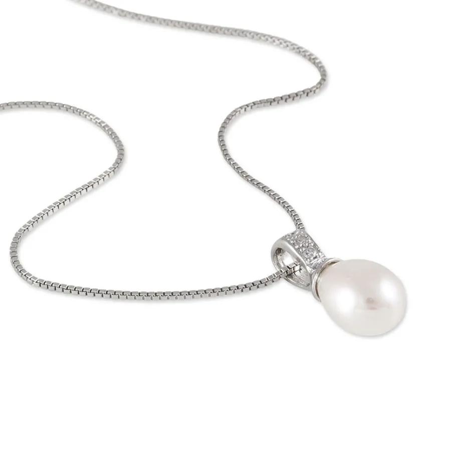 Collier Argent Blanc 925/1000 Coeur Perle De Culture Nacre 7-7.5mm 45cm