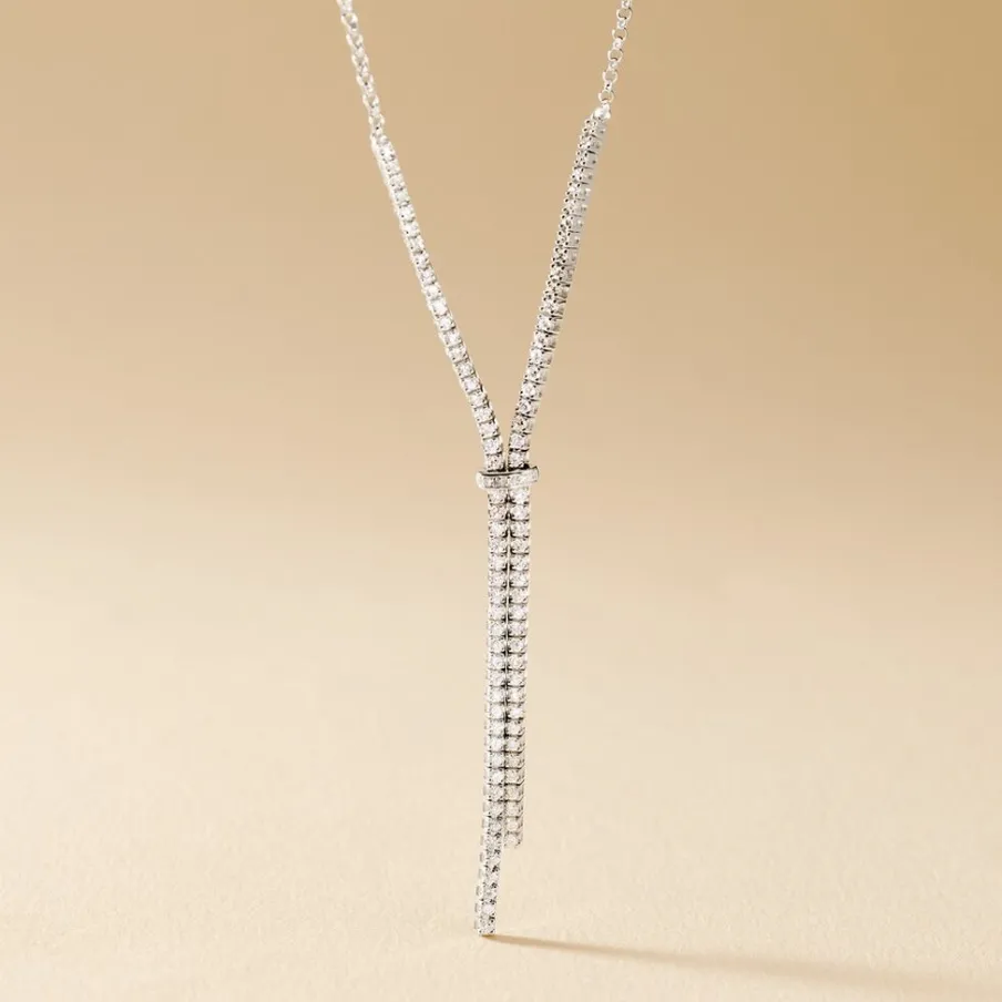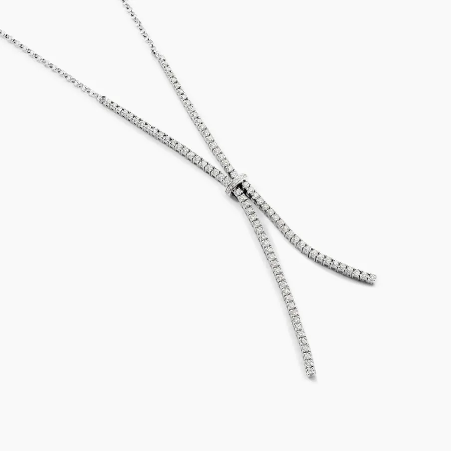 Collier Or Blanc 375/1000 Moscou Rivière De Diamants Sertis Griffes 50cm
