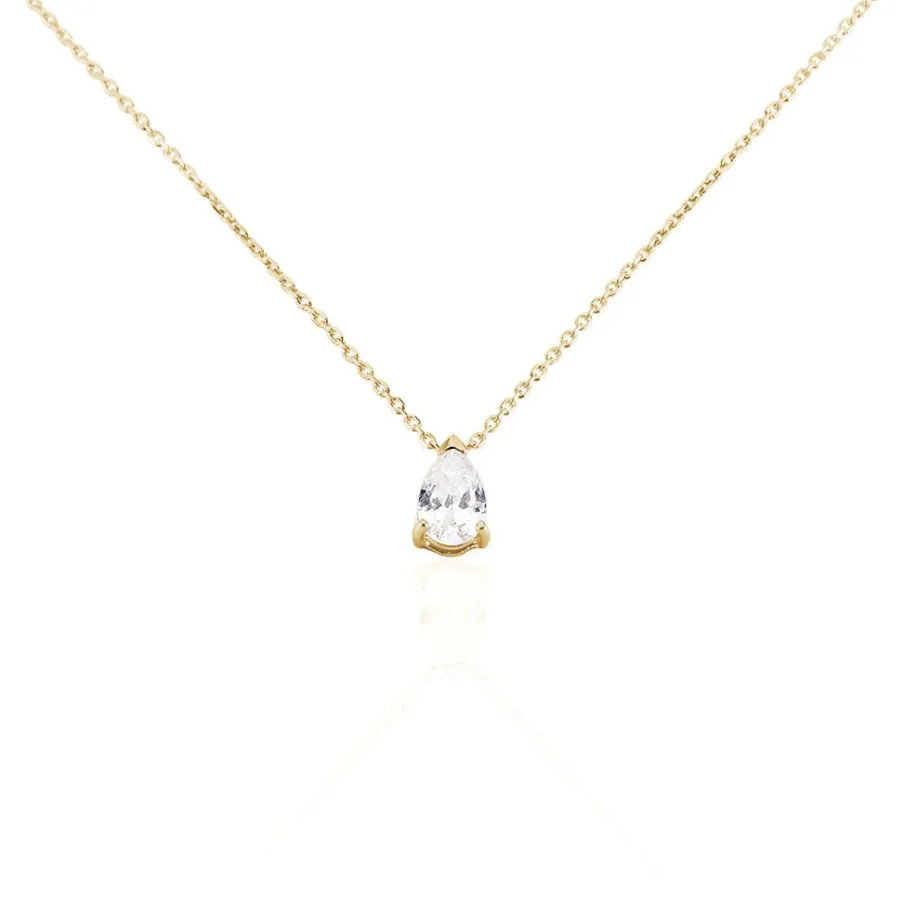 Collier Plaque Or Jaune 1 Oxyde De Zirconium Poire Serti 3 Griffes 45cm