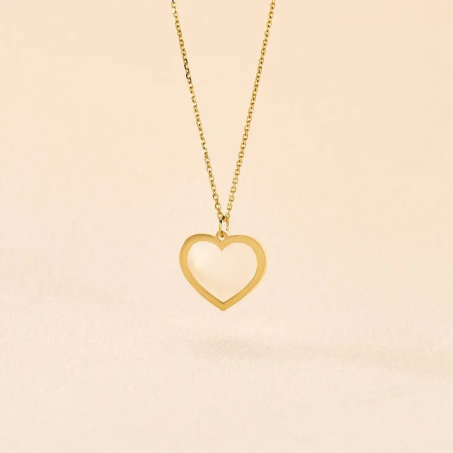 Collier Or Jaune 375/1000 C艙ur Ajoure Et Nacre Maille Jaseron 40+2cm