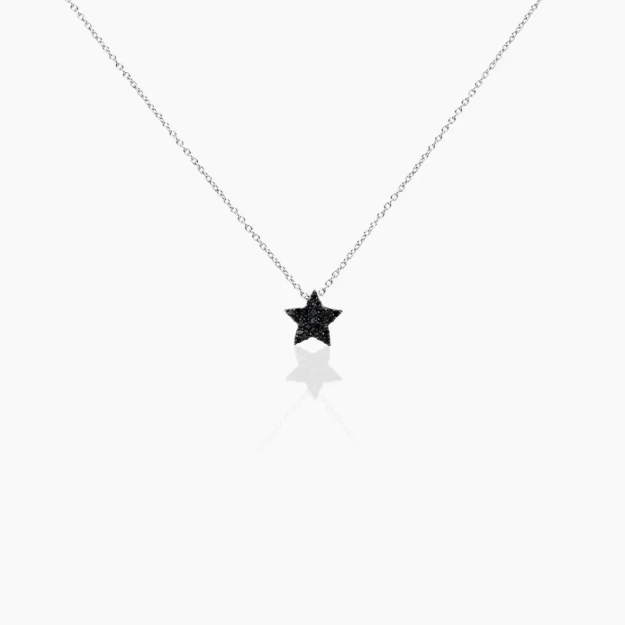 Collier Argent Blanc 925/1000 étoile Pavage Spinelle Noir Maille Jaseron 40+4cm