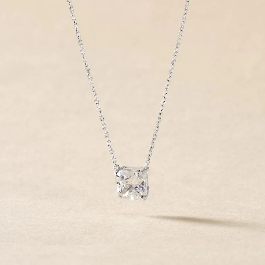 Collier Or Blanc 375/1000 Maille Forçat Oxyde De Zirconium Carre 42cm